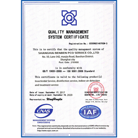 上海奔奔蟲害防治服務有限有限公司,以下簡稱(奔奔蟲控)。奔奔蟲控于2012年進入中國,是首批獲得上海市有害生物防制服務機構國家A級資質的企業(yè),現(xiàn)已成為中國有害生物防制行業(yè)的領軍企業(yè)。當前,我們擁有超過100名經驗豐富的全職服務技術人員和全國唯一的專業(yè)技術團隊,為食品加工業(yè)、食品零售業(yè)、餐飲業(yè)、酒店業(yè)、制藥業(yè)、物業(yè)設施管理、市政和公共衛(wèi)生領域、交通運輸和其他行業(yè)提供專業(yè)蟲害防制服務。